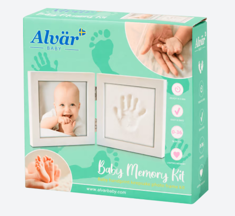 Alvar BABY- Kit Empreinte Pieds & Mains de Bébé, Cadre en Bois Décoration de Chambre, Cadeau, Souvenir de Naissance – Facile à Utiliser.Prêt en 3 minutes.