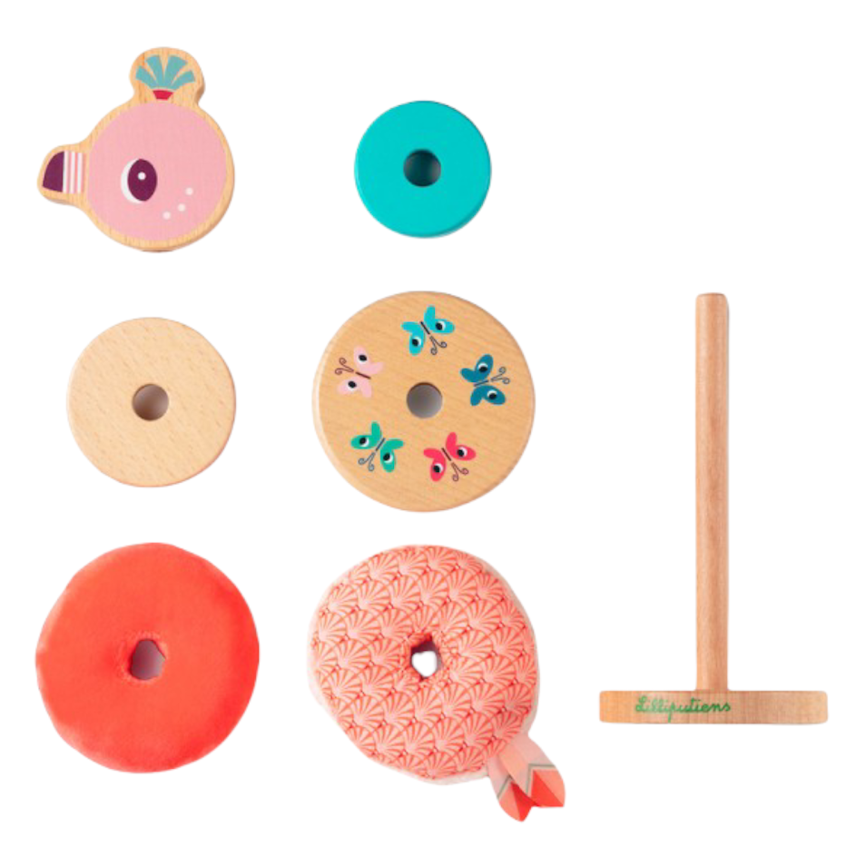 Elle développe la motricité fine des petits bouts qui empileront, à leur guise, tous ces jolis morceaux.