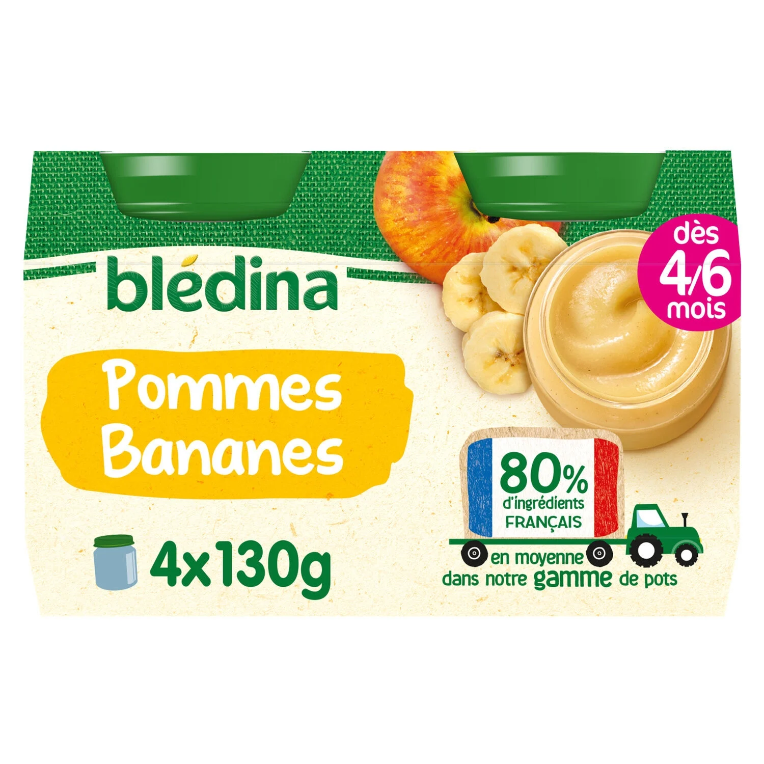 - 24 petits pots Blédina de 130 g chacun ; Compote bebe dès 4/6 Mois ; Pommes Bananes