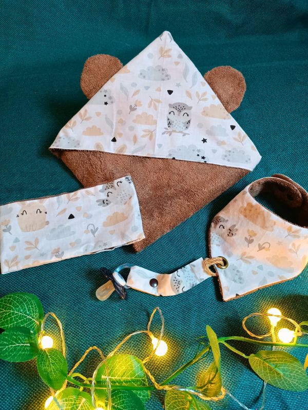 ✔ 1 bavoir bandana avec accroche-tétine : Un accessoire pratique et stylé, pour garder bébé propre tout en ayant la tétine à portée de main.