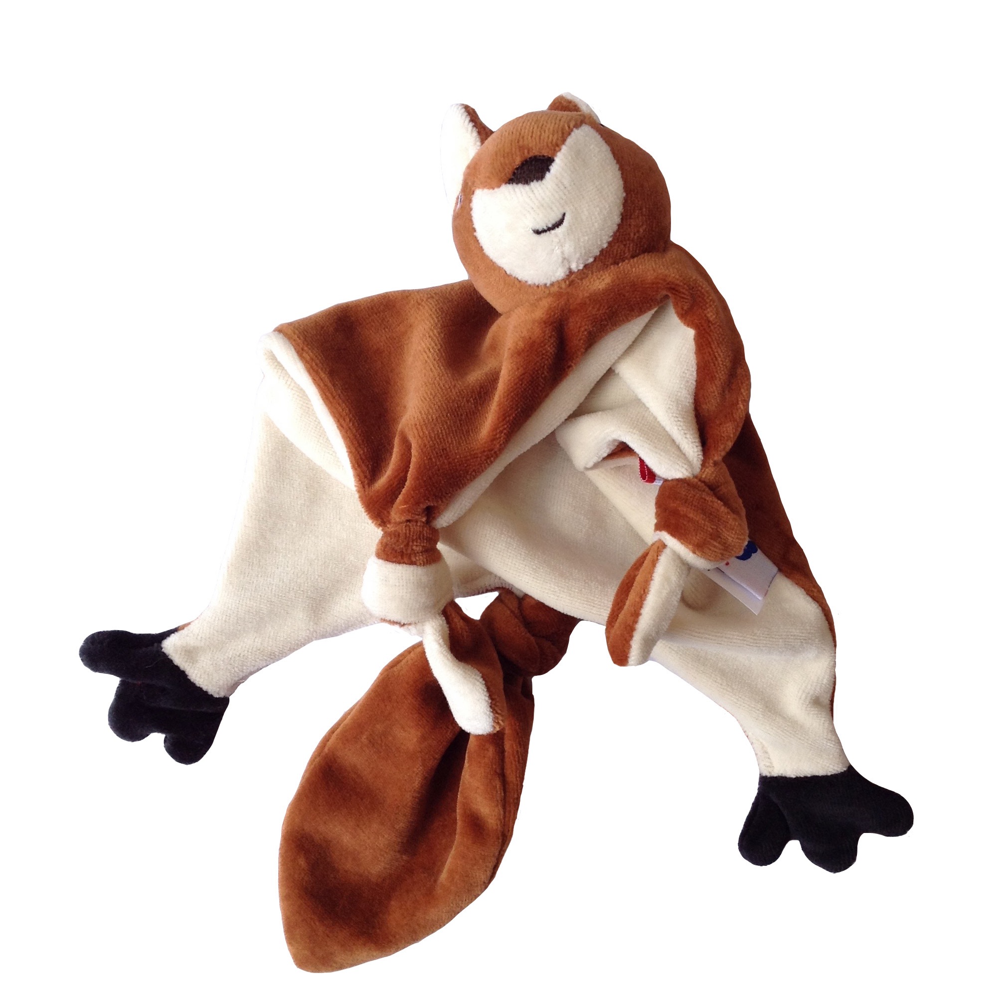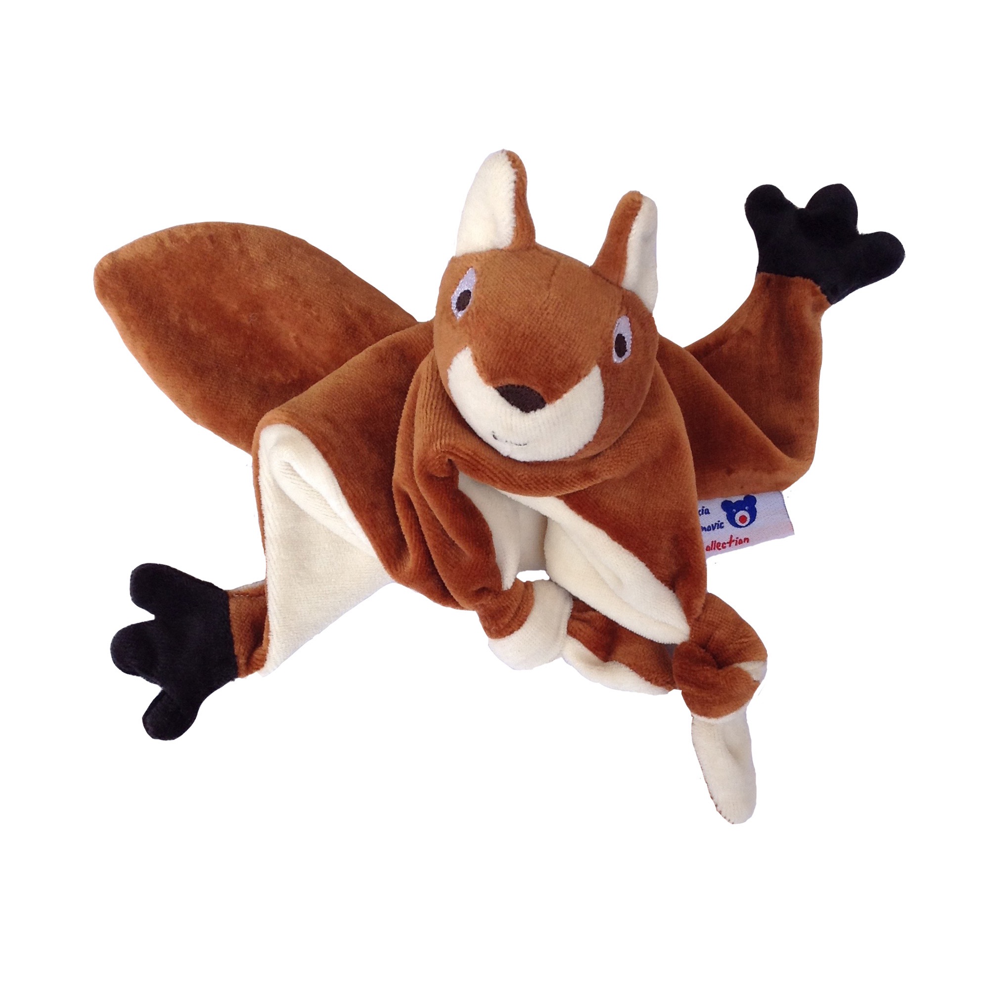 Le doudou écureuil Polatouche en velours de cotons biologiques certifiés GOTS, est à offrir dès la naissance, pour fille ou garçon. Fabrication 100% française dans notre atelier situé dans les Yvelines. Un cadeau éthique tout doux et écologique pour les nuits douces de bébé.