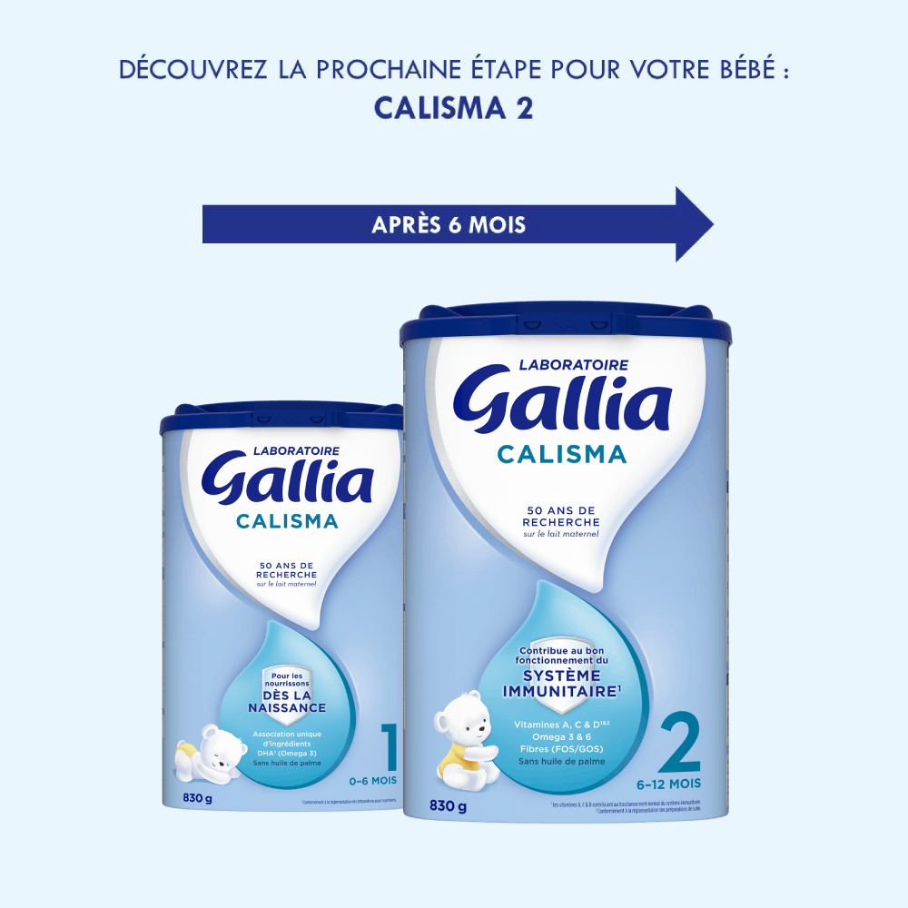 - GALLIA CALISMA 1er âge 830g De 0 à 6 mois, une association unique d’ingrédients avec notamment du DHA (Omega 3).(Conformément à la réglementation des préparations pour nourrissons)