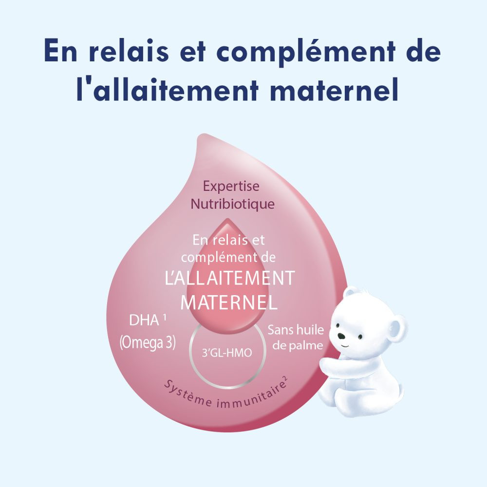 - Avis Important : Le lait maternel est l’aliment idéal et naturel du nourrisson. Toutefois, si vous ne pouvez pas ou ne souhaitez pas allaiter, le Corps Médical vous conseillera une préparation infantile répondant aux besoins nutritionnels spécifiques de votre enfant. Ce produit convient à l’alimentation de votre bébé, n’en changez pas sans demander l’avis de votre médecin.