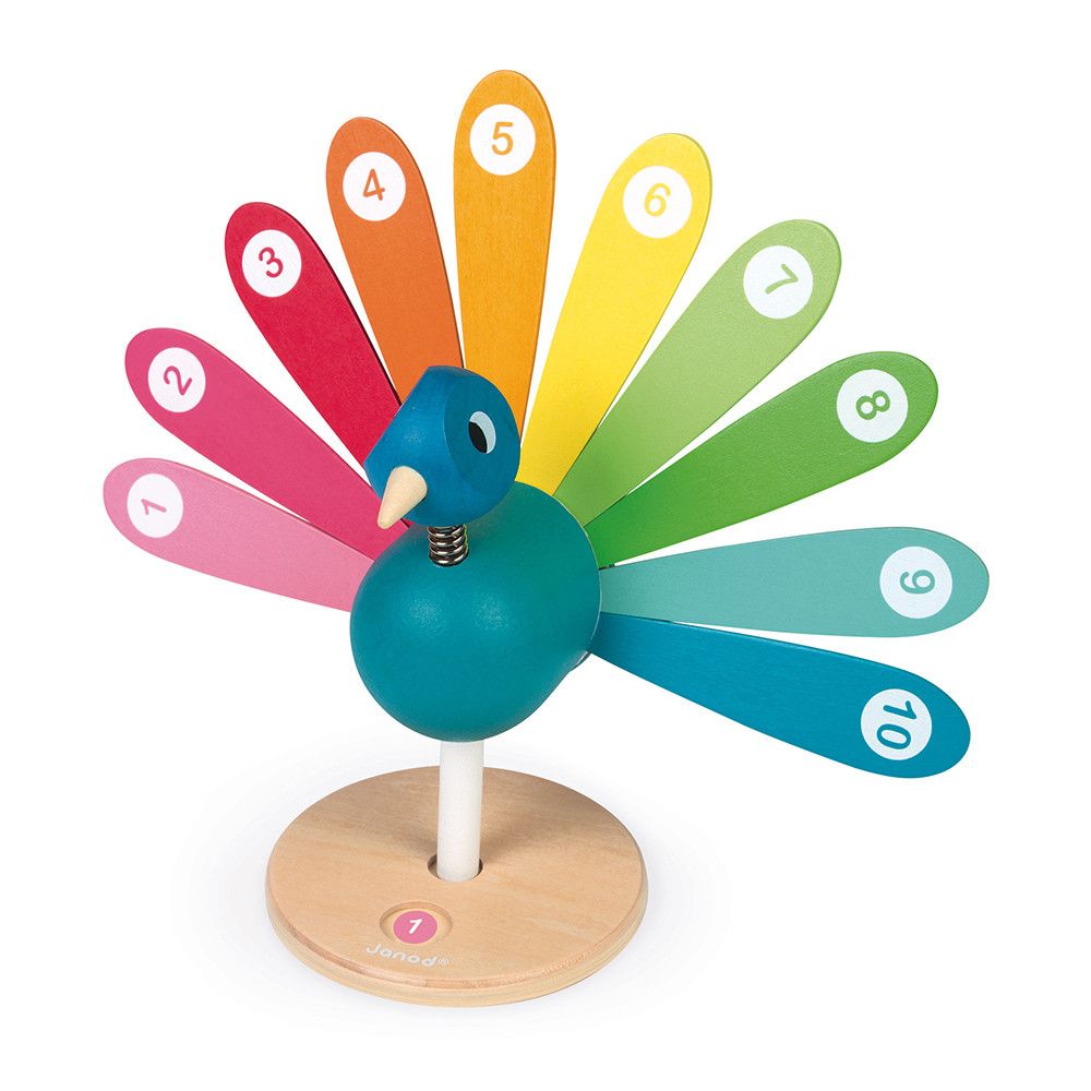Léon Léon ! Apprends à compter, à reconnaitre les chiffres et à les dénombrer grâce à ce joli paon en bois tout coloré. Développe aussi la dextérité et la motricité fine.
