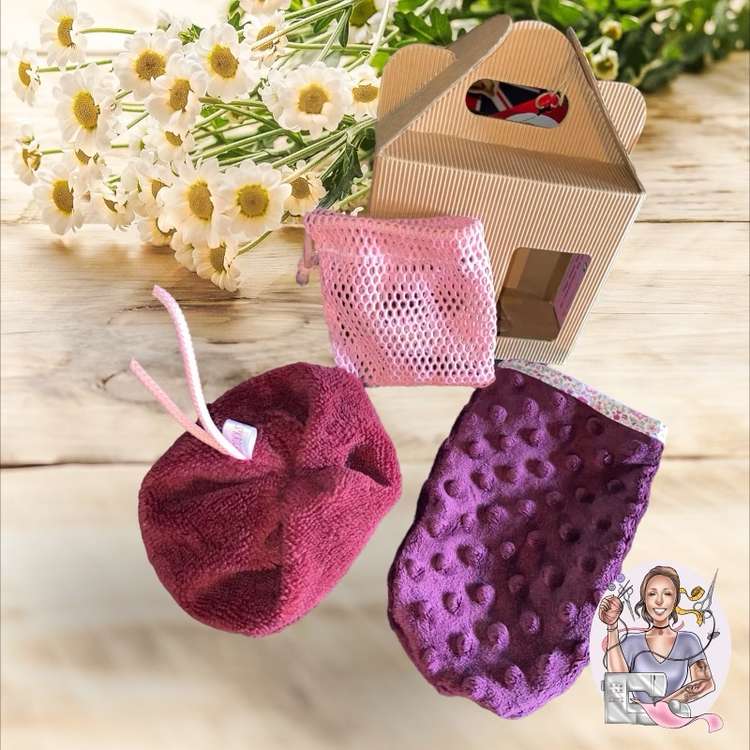 Il comprend une fleur de douche, en éponge bambou, un gant magique en Minky extra doux et d’un filet anti-gaspi en coton bio.