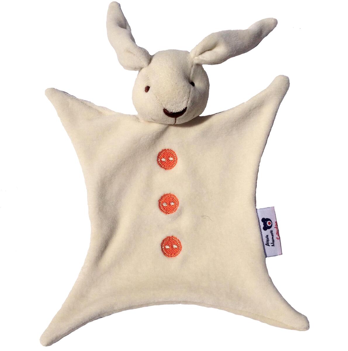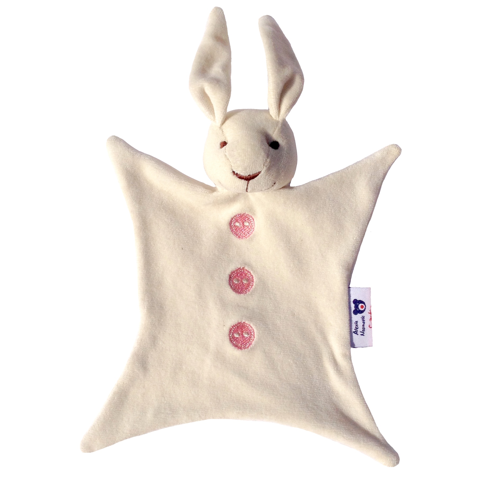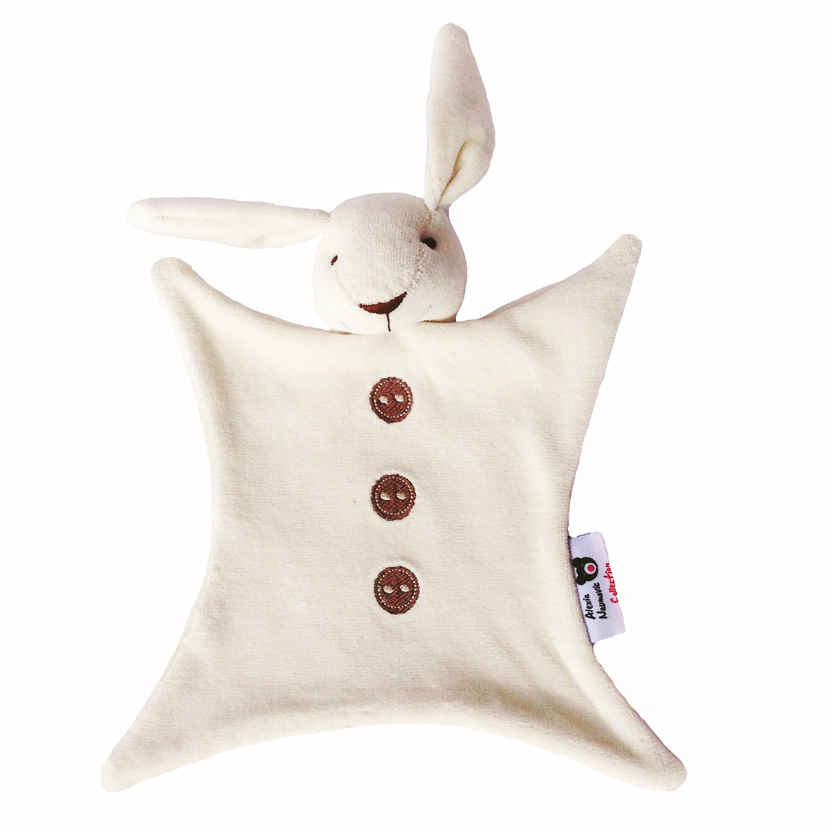 Le doudou lapin est en coton issu de l’agriculture biologique. Une qualité douceur pour bébé, dont les boutons brodés sont proposés dans différents coloris. Pour fille ou garçon, c’est un doudou hypoallergénique, éthique et durable.