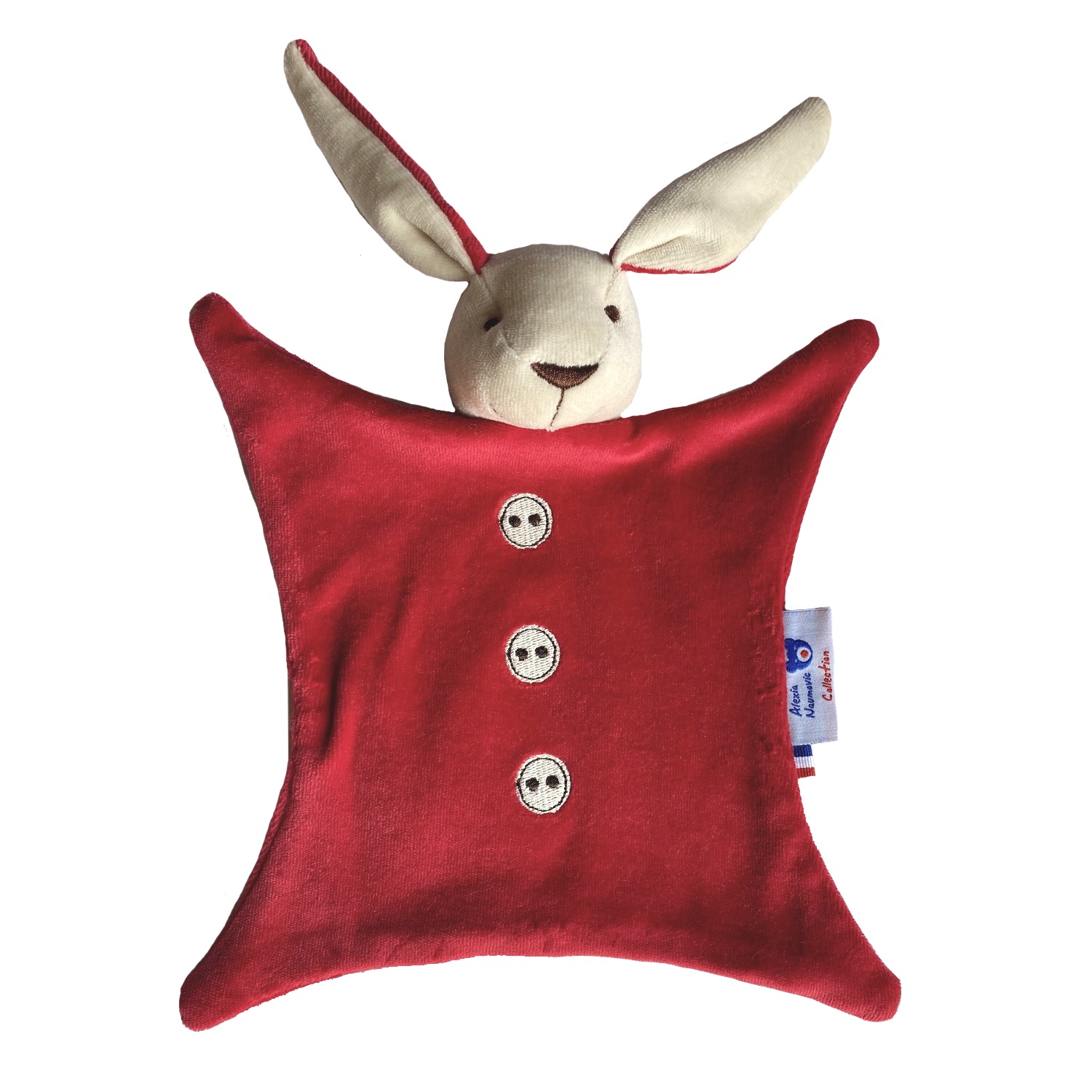 Doudou Lapin en qualité velours de coton 100% biologique.