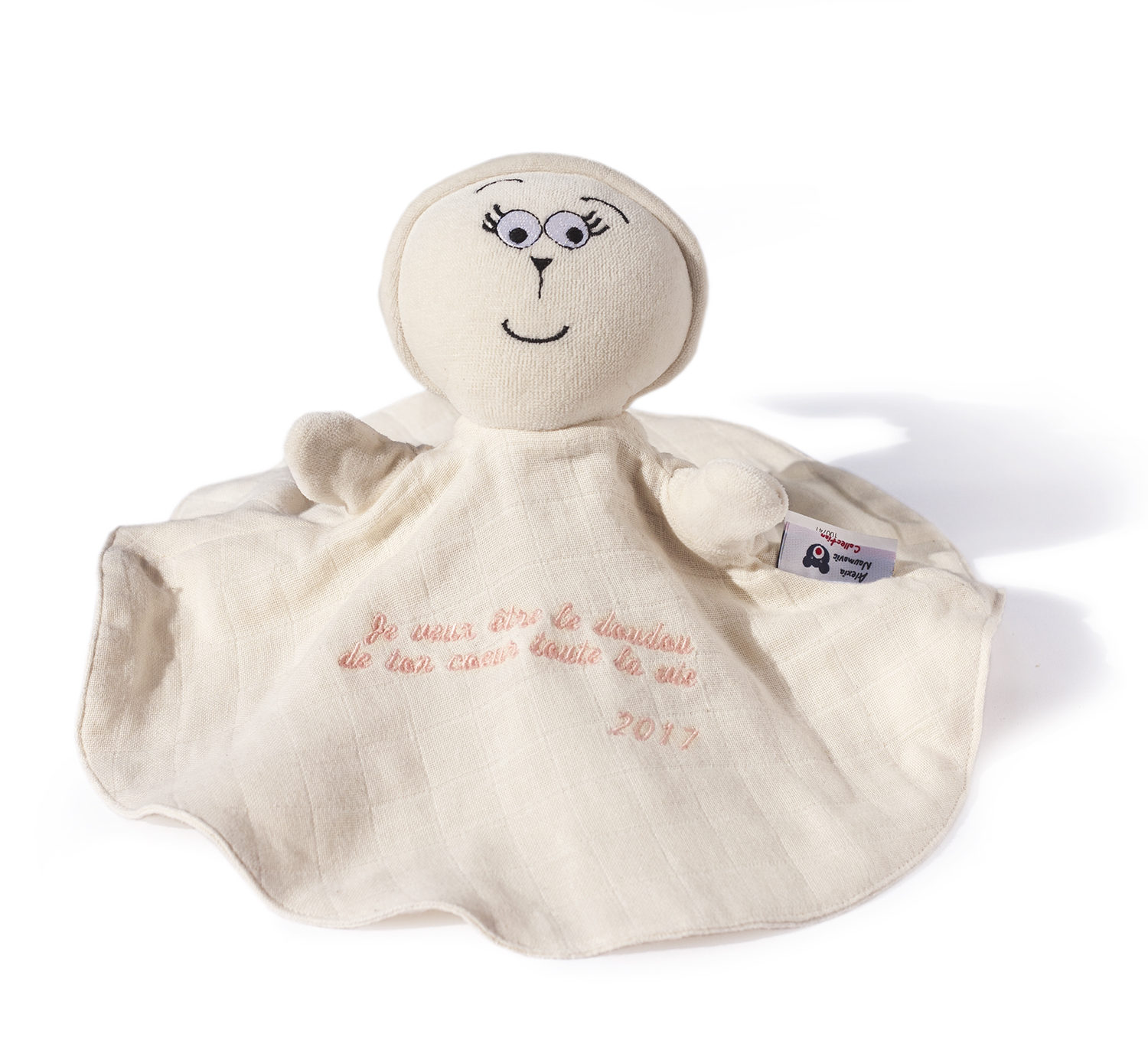 Doudou marionnette au choix de la tête de Loulou, Lulu, Lola ou Lili Meñique. Doudou de coton biologique entièrement fabriqué en France. Peut être personnalisé, différents choix de motifs et coloris. La marionnette doudou Meñique amusera beaucoup bébé. Pour fille ou garçon. A retrouver sur le site : http://www.doudoubio.com