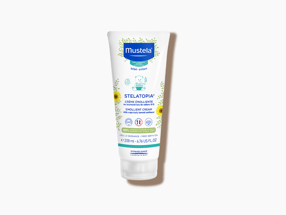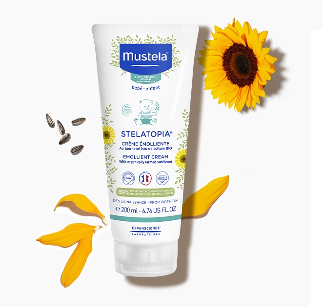 - Votre bébé a la peau extrêmement sèche ? Notre Crème émolliente Stelatopia, utilisable sur le visage et le corps, est conçue spécifiquement pour lui. Avec sa texture douce et fondante, elle hydrate durablement, relipide et apaise les sensations d’inconfort.