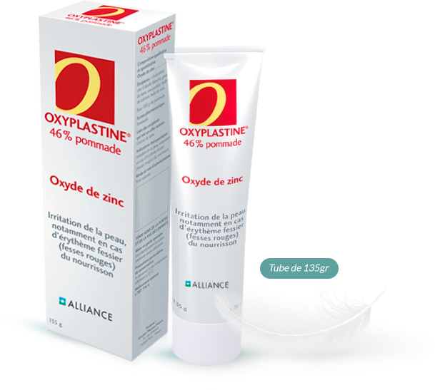 - L’objectif en appliquant Oxyplastine® 46% Pommade est de réduire l’humidité au contact de la peau et les frictions lorsque votre bébé a les fesses rouges. L’oxyde de zinc contenu dans Oxyplastine® 46% Pommade a la capacité d’absorber l’eau et de former un film protecteur sur la peau pour empêcher le contact de celle-ci avec les selles et les urines. La peau de bébé peut alors naturellement se réparer. (3)