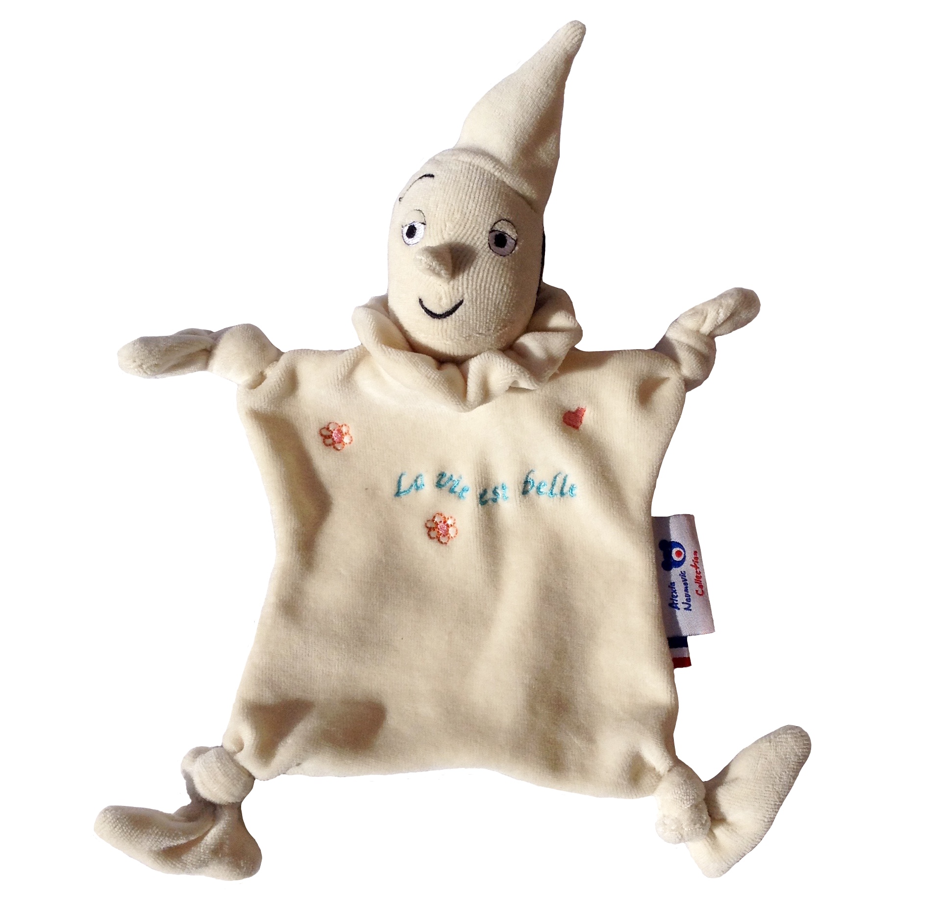 Le doudou est brodé d’un petit message de son choix.