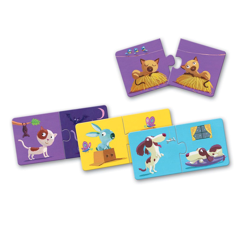 Les 2 font la paire ! Comprendre et apprendre tout en s’amusant. En plus d’initier au puzzle, les Puzzle Duo abordent différentes notions d’une manière simple et ludique. De grosses pièces adaptées aux petits. Puzzle duo Contraires, 12 contraires à associer.