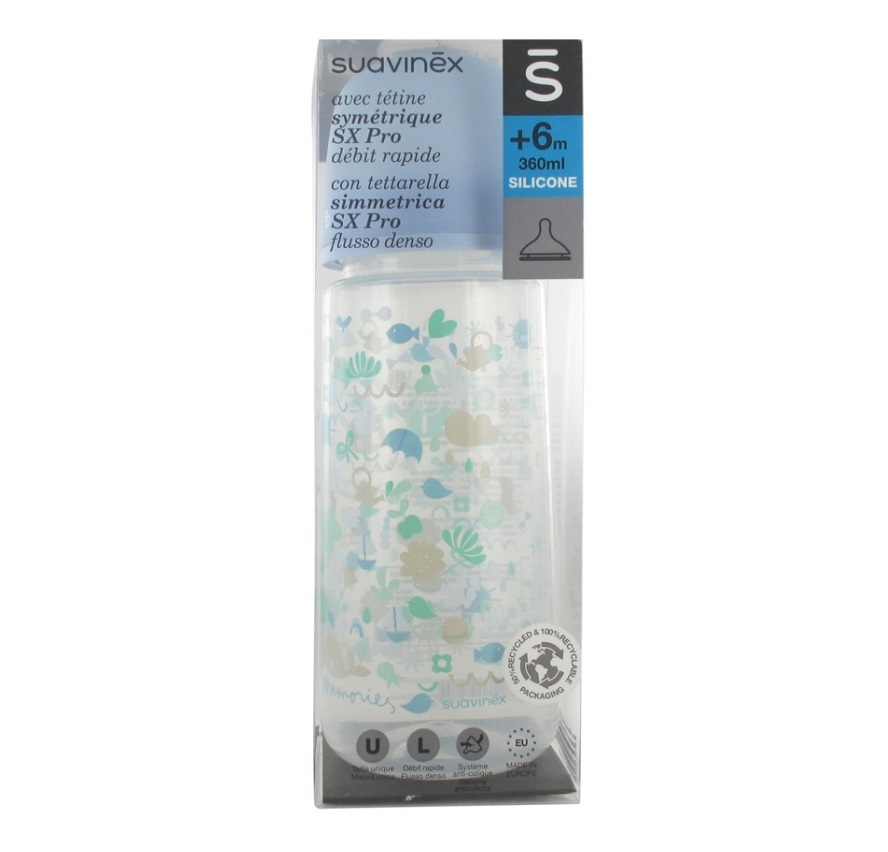 Suavinex Biberon avec Tétine Symétrique SX Pro Débit Moyen 270 ml 3 Mois et +.