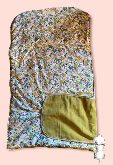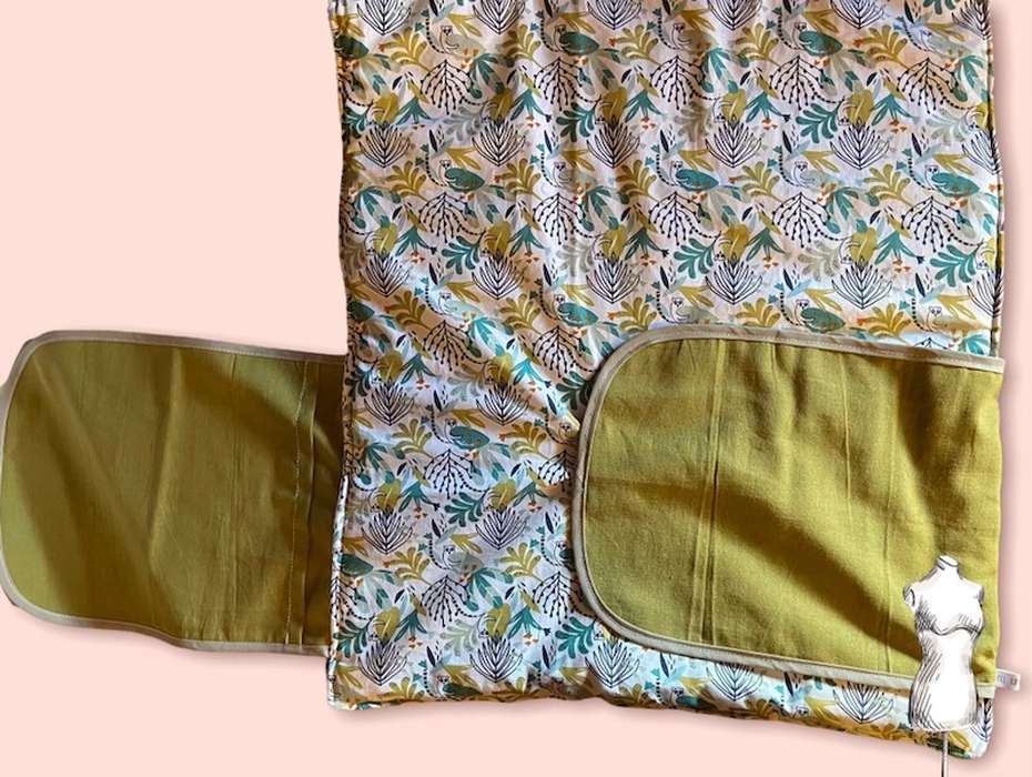 Découvrez notre tapis Nomade, c’est un tapis à langer, super pratique avec ses deux poches sur les côtés pour pouvoir ranger les couches ou autres besoins pour changer votre bébé.
