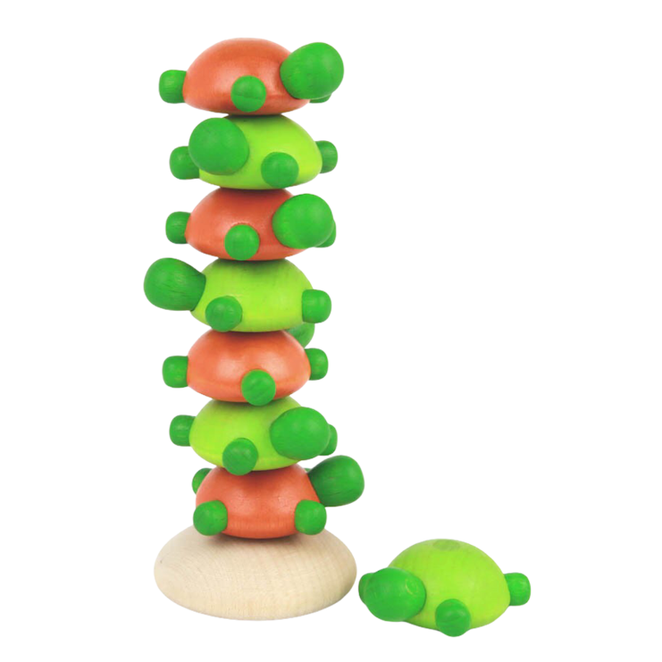 - Seconde version : d’une main ferme, superposez les tortues sur la grande pierre : celui qui réussit à faire la tour la plus haute, sans les faire tomber, remporte la partie !